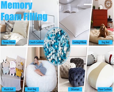 This memory foam filler is suitable for cooling memory foam pillow, bean bag chairs, dog beds, stuffed animals, couch cushion and DIY crafts that need filling.